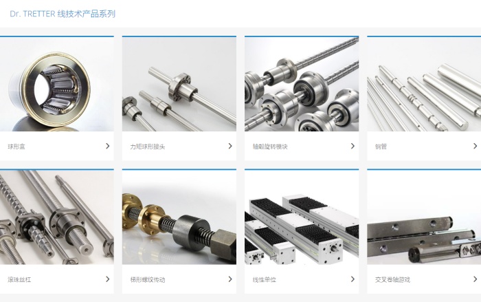 DR.TRETTER是德國(guó)品牌,專注于線性技術(shù)和智能軸毘連接領(lǐng)域,提供球腳輪、直線導(dǎo)軌、滾珠絲杠、軸承、公差環(huán)等產(chǎn)品。 ?
